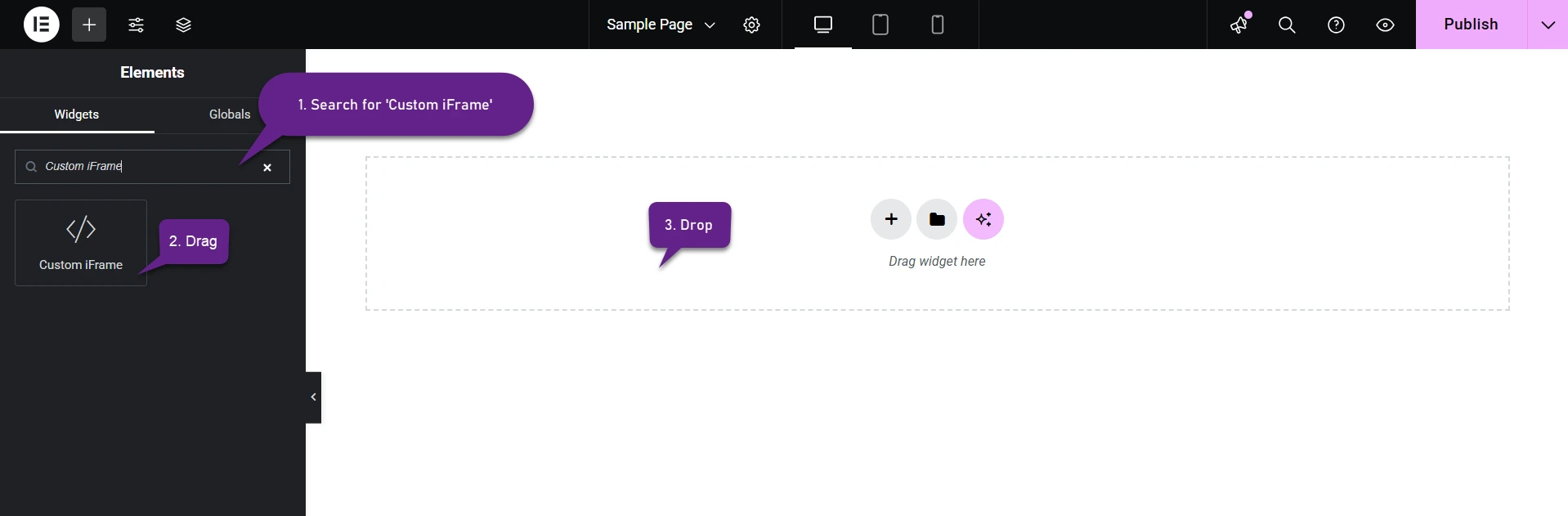 Step 2: Add the Custom iFrame Widget